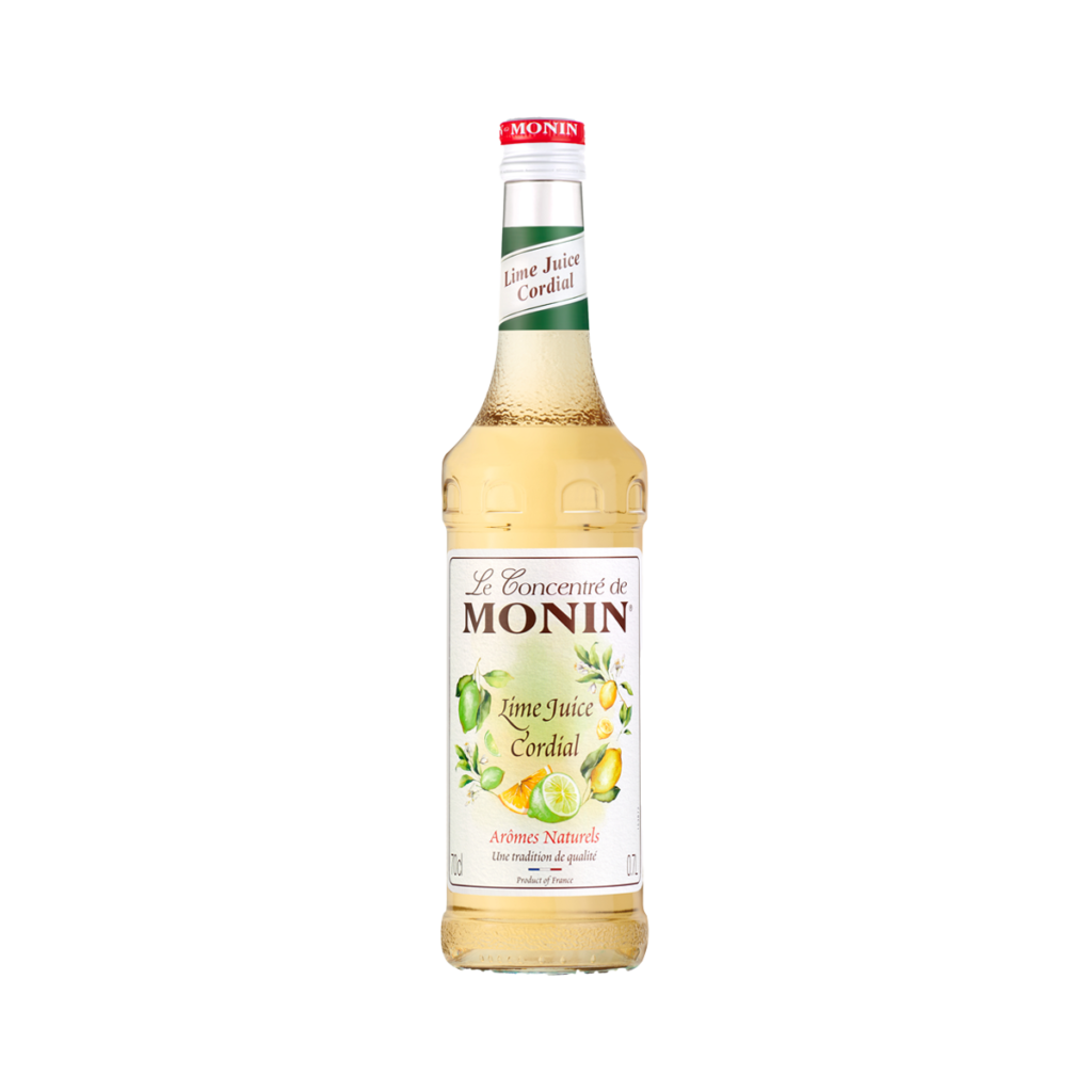 Monin Cordial Lime je mješavina soka od limete, limunovog soka i šećera. Napravljen je od minimalno 50% soka. Monin Cordial Lime ima niži sadržaj šećera od sirupa i savršen je za davanje jedinstvenog okusa i ravnoteže vašim klasičnim koktelima kao što je Margarita, Maï-Taï i Gin Tonic.