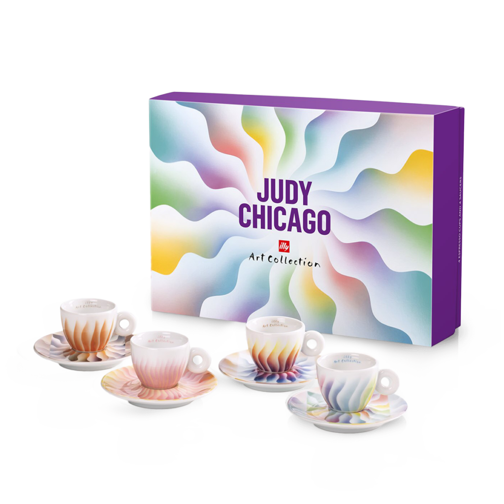 Za ovu illy Art kolekciju, Judy Chicago je ukrašila elegantne oblike ikonične espreso šalice senzualnim potezima koji su obilježili njezin rad u seriji Velike Dame, posvećenoj ženama koje su odigrale ključnu ulogu u povijesti umjetnosti, književnosti i politike: ikone poput Virginije Woolf, Madame de Staël, George Sand i Marie Antoinette.